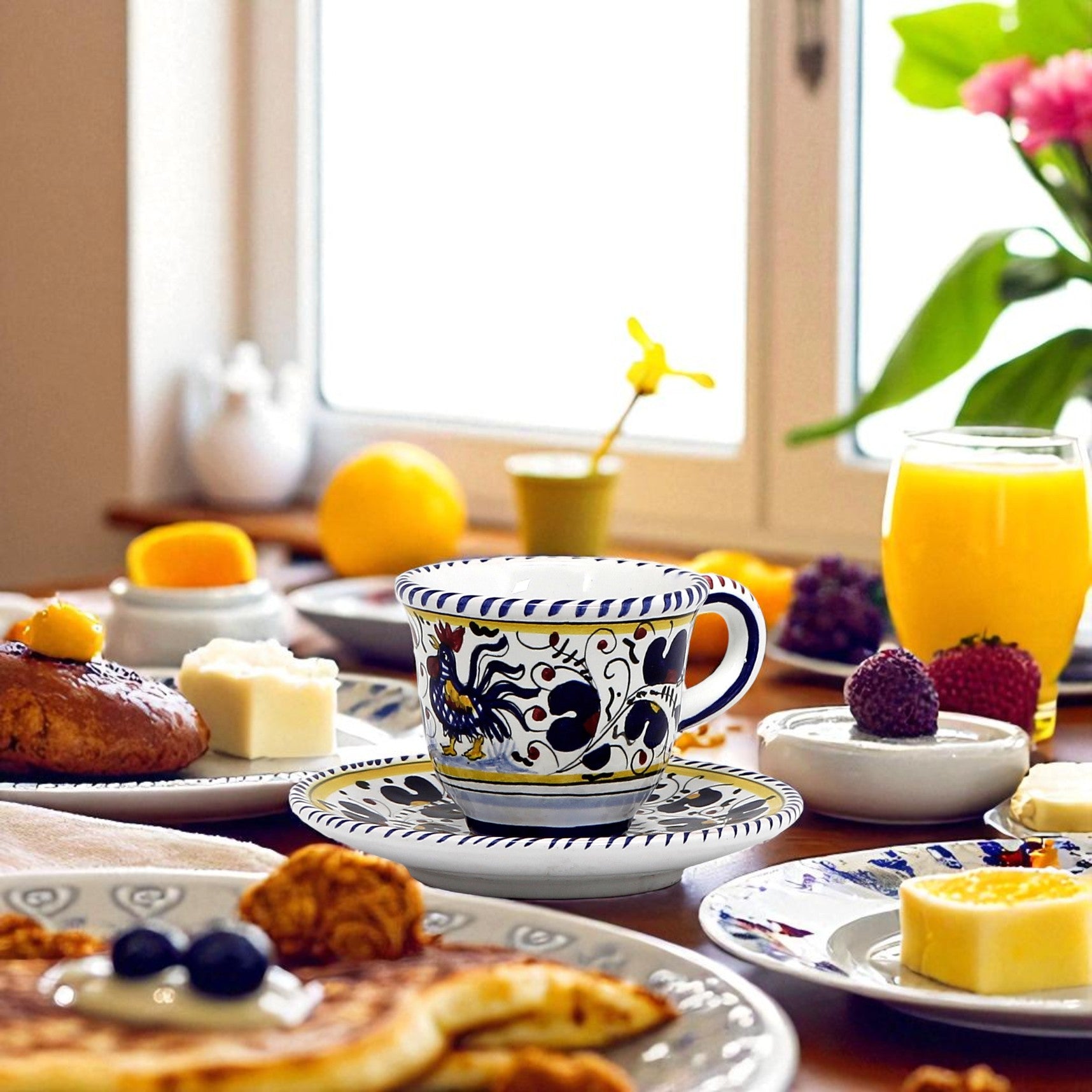 ORVIETO BLUE ROOSTER: Espresso cup and Saucer