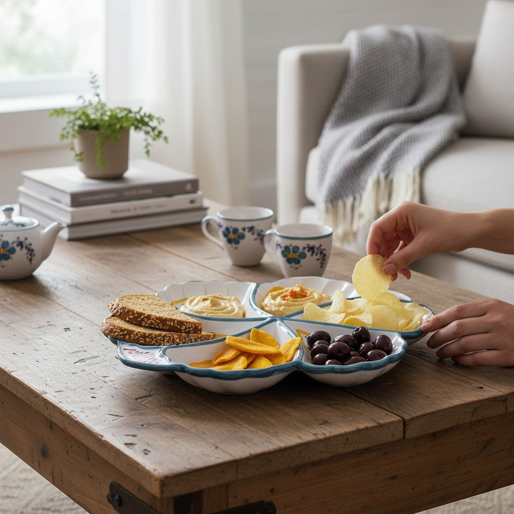 ORVIETO GREEN ROOSTER: Snack Tray Fiore/Shell - Six Compartments